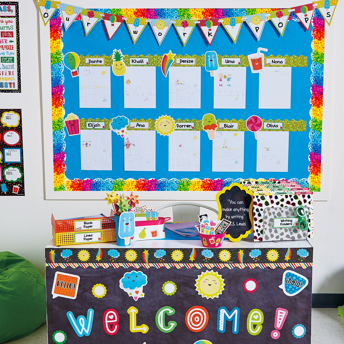 CONVENIENT SELF-ADHENSIVE -- With a strong adhesive backing, our bulletin board decorations stay firmly in place on walls or other surfaces. Enjoy hassle-free setup and save valuable teaching time.